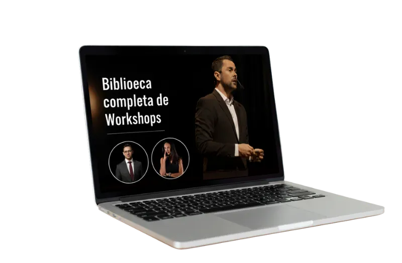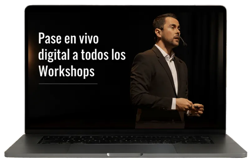 Los Workshops son entrenamientos intensivos y completos sobre un tema específico (como una Masterclass sobre IA o cómo escribir un libro). Las mentorías, por otro lado, son sesiones semanales en vivo, interactivas y grupales, diseñadas específicamente para resolver tus dudas puntuales, darte feedback directo y ayudarte a aplicar correctamente las estrategias en tu negocio. Ambos se complementan para tu máximo crecimiento.