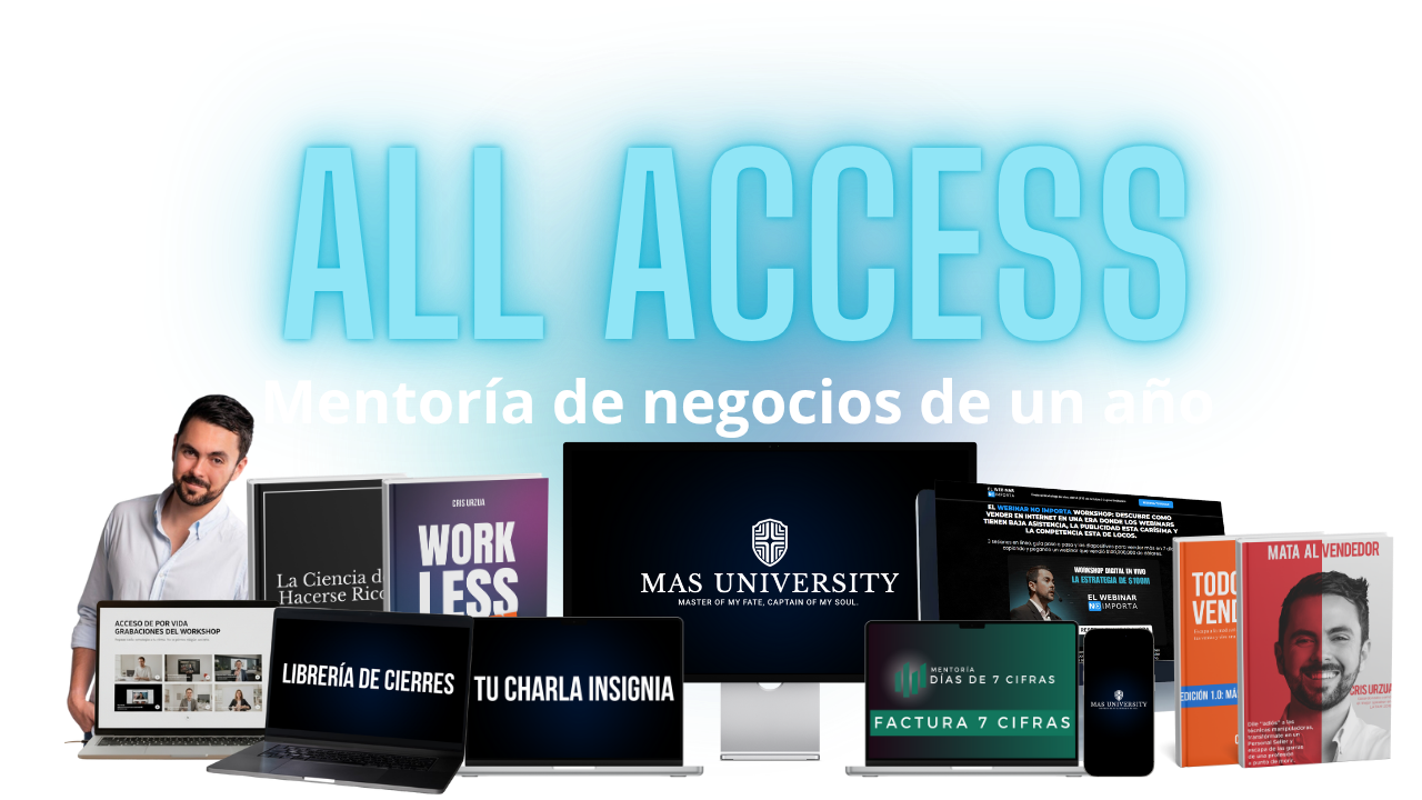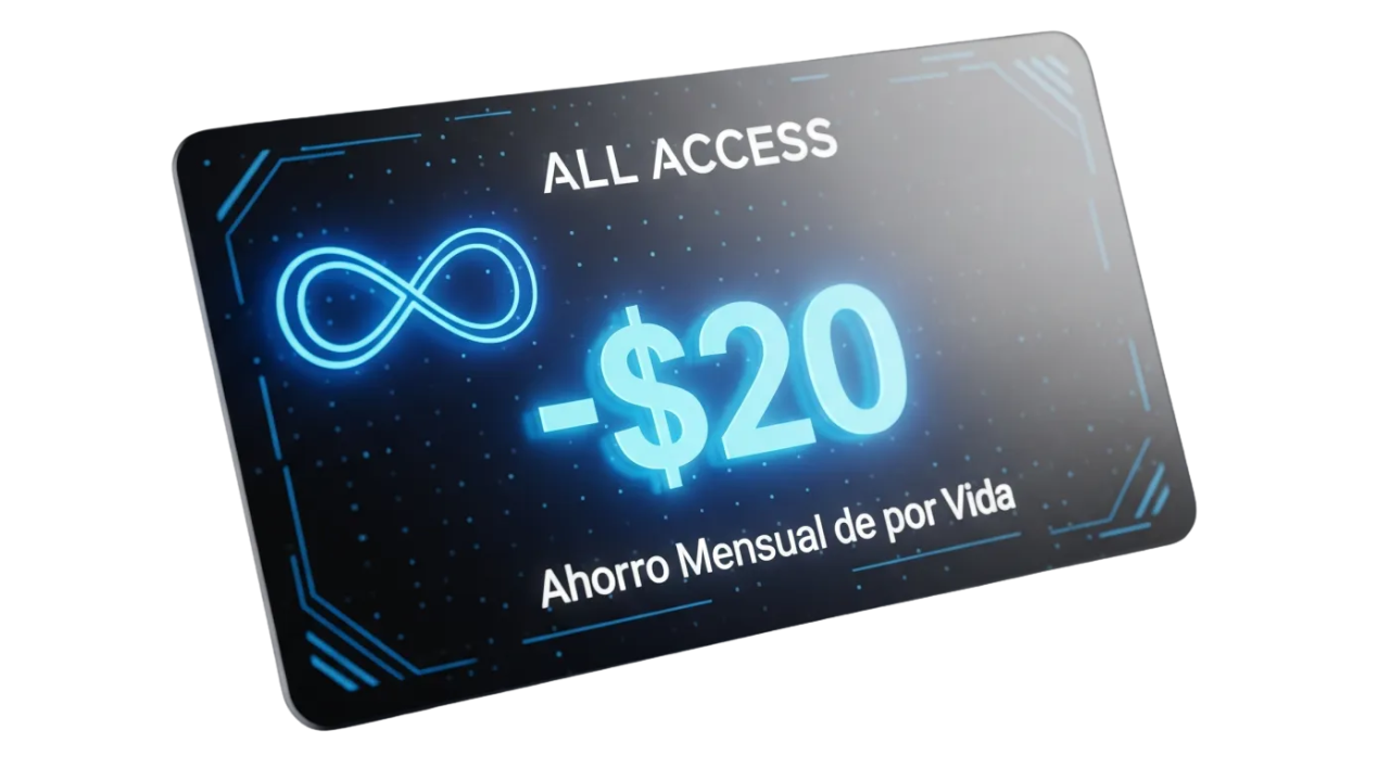 Excelente pregunta. Piensa en el workshop que acabas de adquirir como el mapa estratégico para un destino específico. ALL ACCESS es el vehículo de alto rendimiento con GPS en tiempo real, gasolina ilimitada y un equipo de mecánicos a tu disposición para asegurarte de que llegues a ese destino (y a muchos otros) de la forma más rápida y eficiente posible. El workshop te da el “qué”; ALL ACCESS es el “cómo” continuo que garantiza tu éxito.