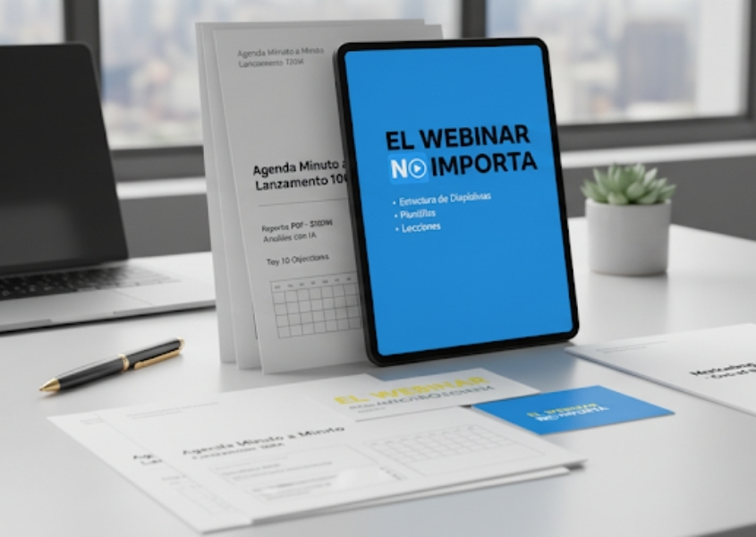 - Diapositivas del método “El Webinar No Importa” — deja de improvisar, solo cambia nuestros textos por los tuyos.